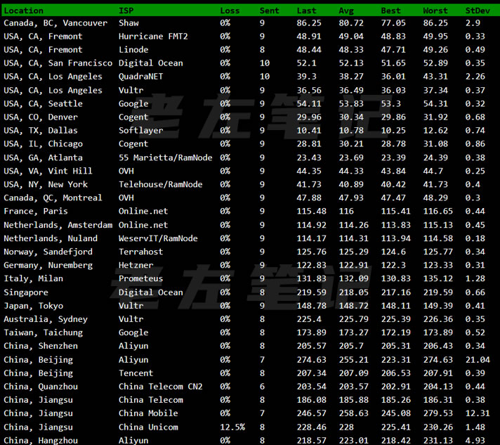 我们可以看到美洲地区的速度下载和上传速度确实是比较好的。