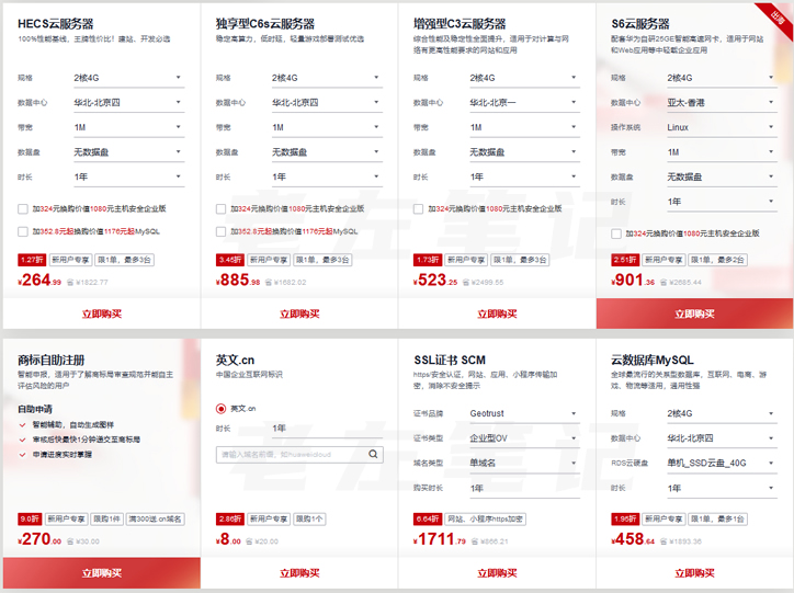 企业和个人的优惠力度和方案是不同的。比如还有.CN域名首年8元。华为云服务器CPU资源正常没有扣量。