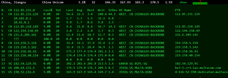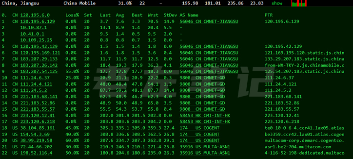 先看看PING速度。再看看三网去程。