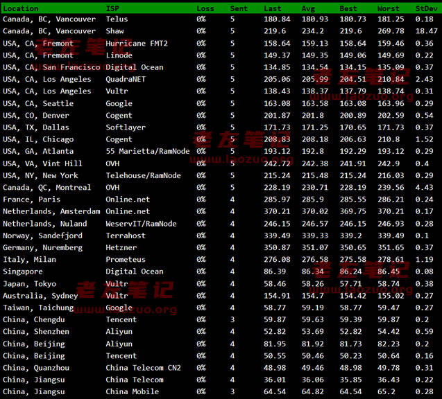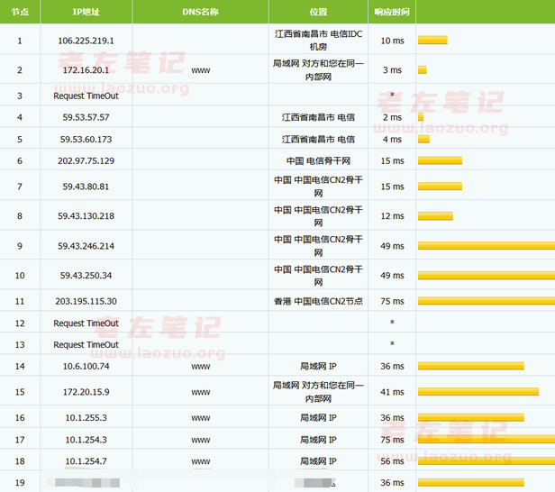 我们可以看到PING速度还是不错的,毕竟线路走向是CN2。