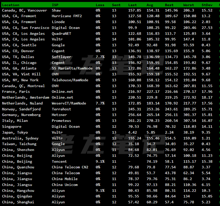 日本东京/日本大阪区域下单时可选,网络由SoftBank、KDDI、NTT和IIJ混合接入,四网BGP随机切换。我们可以看到并非全部CN2接入直连的,延迟上还是有较多丢包。