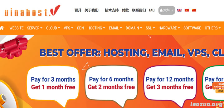 Vinahost,这个主机商老左还是第一次介绍到,翻看商家的介绍信息,是一家成立于2008年的老牌越南主机商,业务涵盖网站设计、域名、SSL证书、电子邮箱、虚拟主机、越南VPS、云计算、越南服务器出租以及设备托管等,机房主要在越南胡志明市的Viettle和VNPT数据中心,其中VNPT数据中心对于国内是三网直连,速度优。