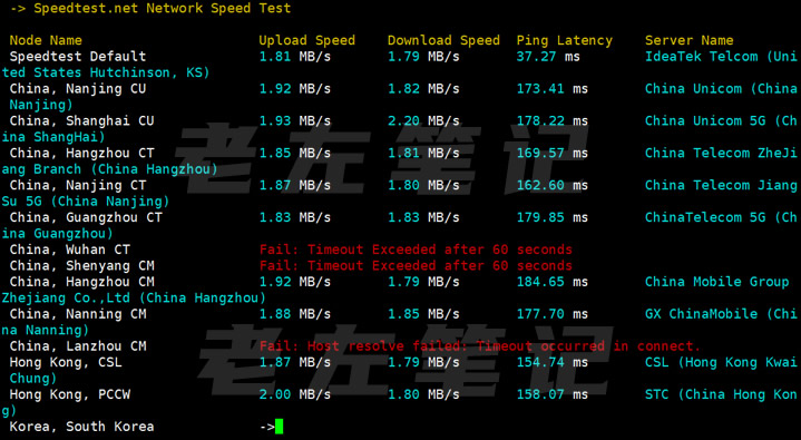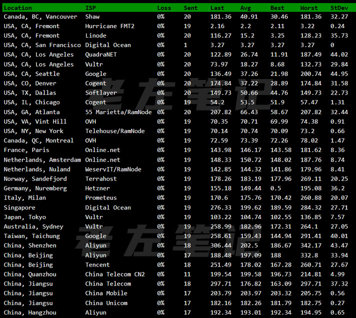 这里用惯例的延迟测试和丢包测试工具测试全球节点速率。