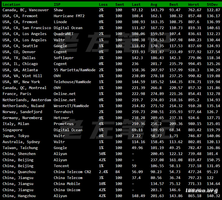 这里依旧采用的是PING.PE工具进行的全球节点速度测试。