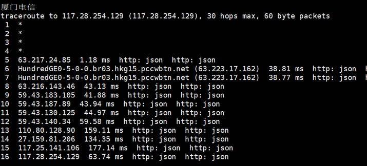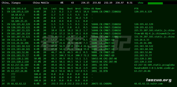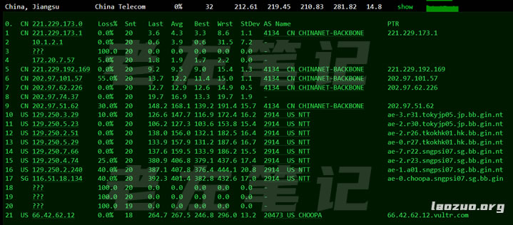 这里我找到的是中国电信和移动的路由去程,线路是一般的,如果是亚洲非中国节点线路还是不错的。