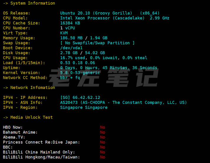 这里是对VULTR的新加坡机房的性能测试。比较适合新加坡或者亚洲的业务。中文业务的话速度不是很快。