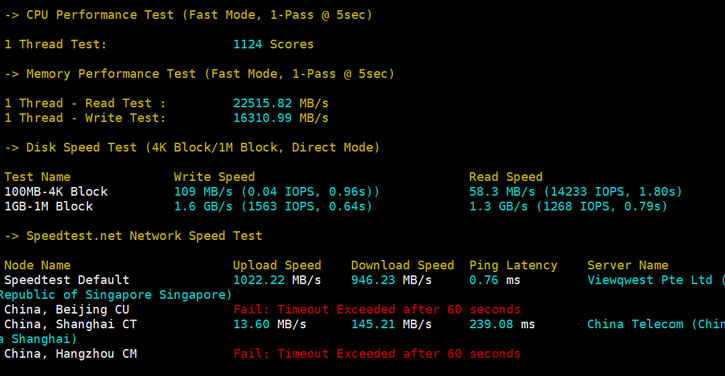 我们一起看看VULTR新加坡机房的测评性能吧。