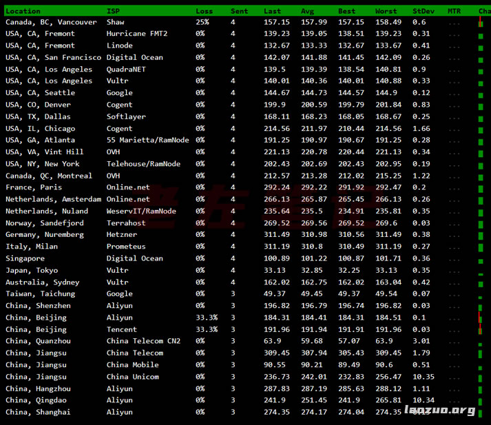 1、全球节点PING速度测试