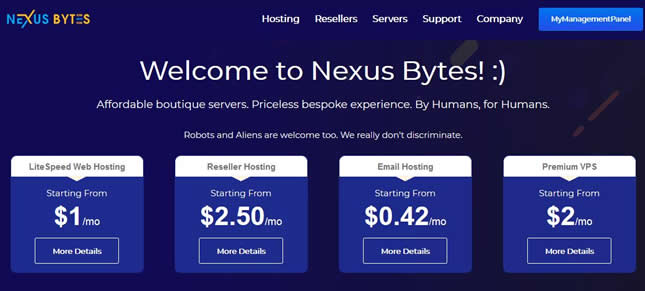今天老左要介绍的这个Nexus Bytes商家之前有介绍过一次(在这里),商家是2016年的美国主机商,目前销售的产品有虚拟主机、分销主机、VPS及独立服务器,机房有美国洛杉矶、纽约、德国、新加坡和日本等。NexusBytes提供中文,并支持支付宝、信用卡和paypal等常见的付款方式。近日NexusBytes推出了大硬盘VPS以及高性能AMD VPS的优惠促销,月付4美元起,机房可选美国、德国、日本和新加坡等。