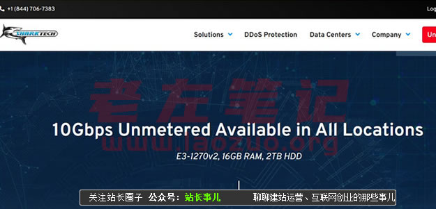 这里我们可以看到有提供10G带宽服务器,可选美国洛杉矶和丹佛以及荷兰阿姆斯特丹机房,不限制流量,提供免费60Gbps防御。