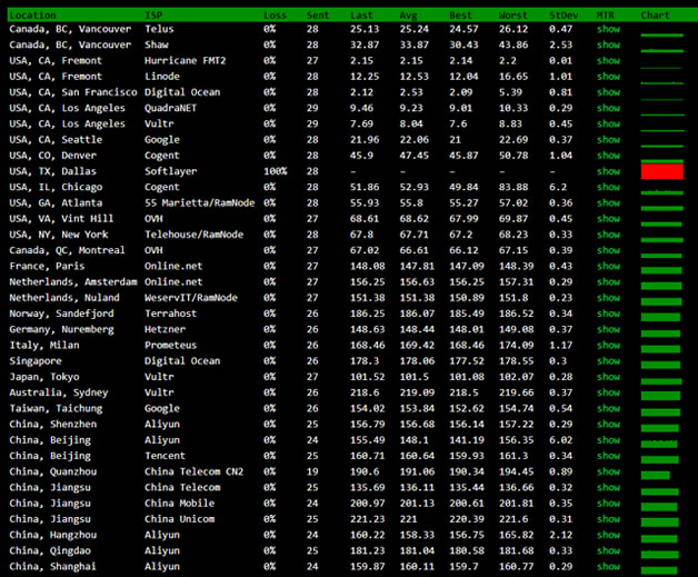 3、PING延迟测速情况