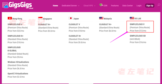GigsGigsCloud商家老左已经有大半年没有提及,主要原因是目前已经不在使用他们家的机器所以难得遇到他们需要记录的问题。实际上对于GigsGigsCloud商家我们还是比较了解的,早年各种线路方案,但是应该是发现还是我们的需求比较大,所以看到陆续新增香港、马来西亚、日本等线路。包括我们可以看到美国VPS主机方案也调整,之前有国际线路的,现在看到也只有一个SimpleCloud V USA Los Angeles VPS。