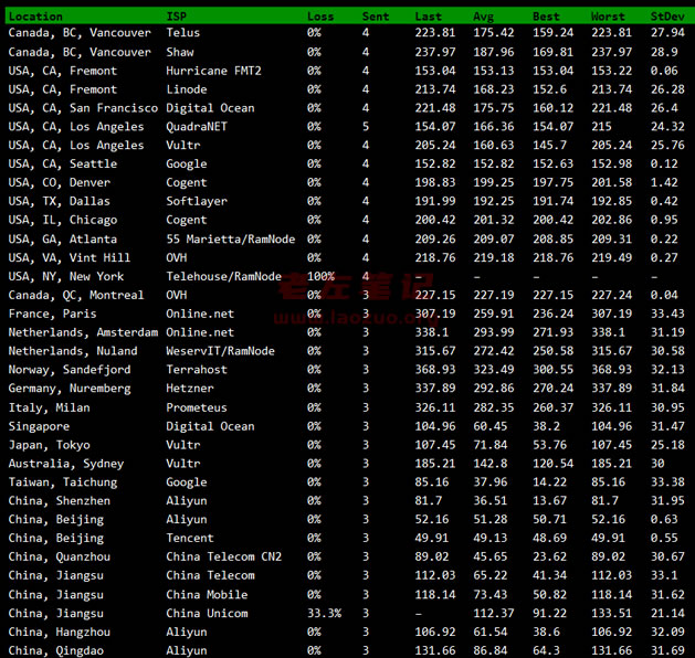这里我们可以看到我们国内的访问速度还是很不错的。
