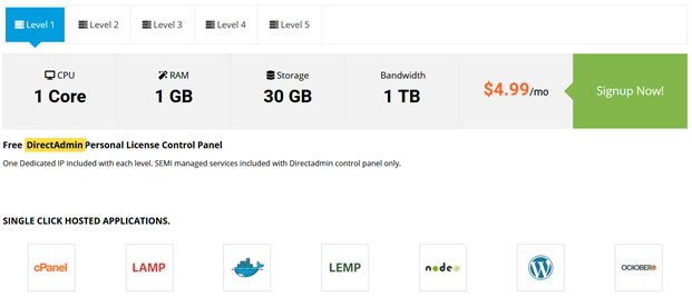 我们可以看到各个机房的价格稍微有点差异,最低是4.9美元每月,而且有赠送DA面板授权。当然授权只能使用到他们的机器上。