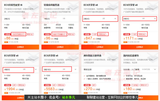 ECS共享型 S6:这个老左比较推荐的,我们可以看到有4G和8G内存可选,而且直接可以三年方案而且可选带宽1-10M,比较适合中长期的项目。比如我们网站业务后续做大还是值得的,就不需要高价升级。更有一个特点就是这款套餐支持一人享受三台,是不是直接薅三台多项目需要。