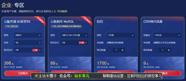 我们喜欢的腾讯云商家刚才也有发布活动。活动形式基本上几年都是一样的直接了当,他们的策划部文案和美工基本上闭着眼睛都会设计,没有多大的创新策划,就直接的限时秒杀优惠、企业和个人优惠不同方案、代金券领取等等,我都猜到是这些。