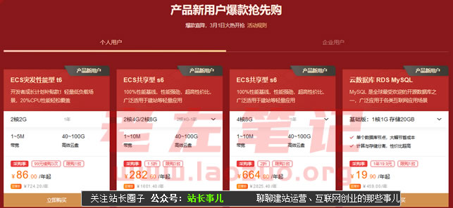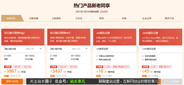 同时,我们也可以看到还有企业新用户优惠活动。配置相对是比较高的适合企业需要。