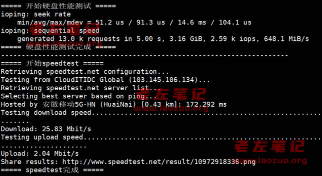 这里测试IO硬盘读写和速测。下面我们全面测试各个 节点下载上传测速。