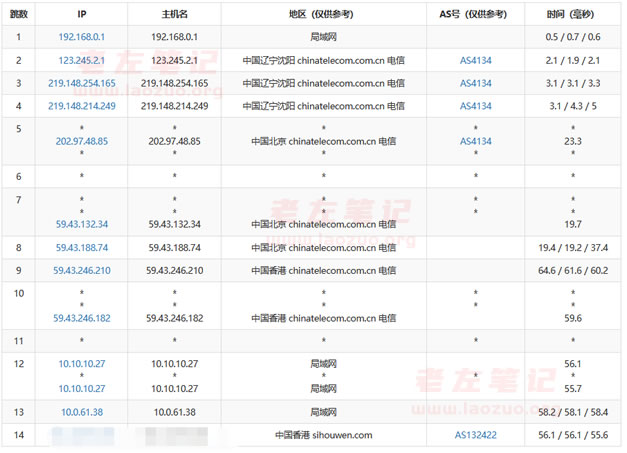 随机选择一个电信节点路由去程测试,看到是CN2线路。