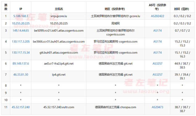 2、Vultr德国机房路由去程