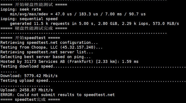 3、VuLTR德国机房硬盘读写速度测试