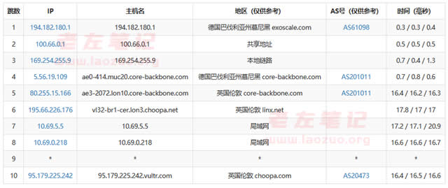 总结,以上是老左对于VULTR欧洲云服务器机房伦敦机房的简单测试。如果是有需要单独针对欧洲业务的外贸网站或者其他业务是没有问题肯定选择欧洲机房的。如果中文业务那不建议选择。