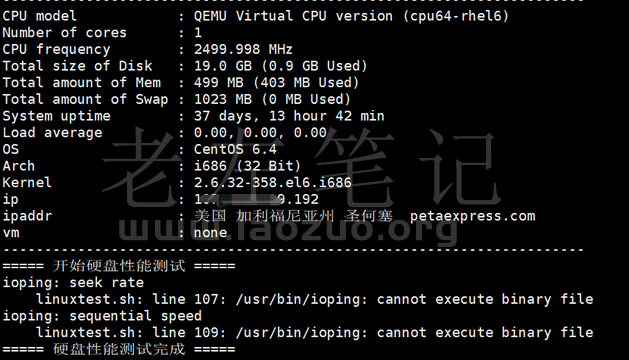 这里可以测试到当前VPS主机的配置,目前在线37天,应该当时也有宕机过,我应该有半年没去动过他。