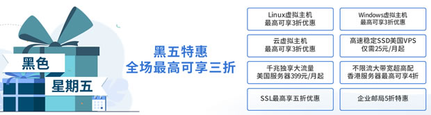 我们熟悉的Bluehost主机商黑色星期五也是有在做活动的(BH中文商),这次黑色星期五期间有推出虚拟主机低至三折,以及美国SSD VPS主机低至月费用25元起步,同时还有其他独立服务器、SSL证书等云产品的活动。这里老左简单的梳理看看,如果有对于他们家熟悉且有需要的可以使用。