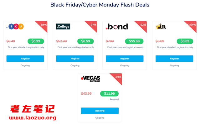 NameSilo历年黑色星期五期间确实也很少有促销活动,今年也不例外。今年黑色星期五陆续商家都有发布促销活动,包括上面老左有介绍的namecheap商家黑五活动力度还是比较大的。namesilo商家并没有提供较大的力度常规的域名,但是也有部分后缀有参加活动。
