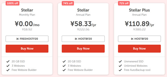 虚拟主机stellar款使用FREEHOSTF20优惠码免费首月。不过我之前测试过,虚拟主机速度真一般。