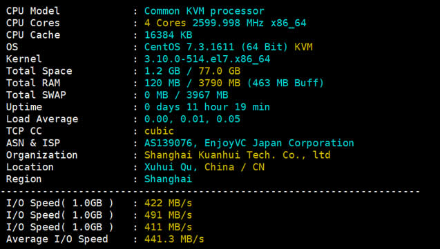 这里检查当前VPS主机的配置信息,以及IO读写能力。