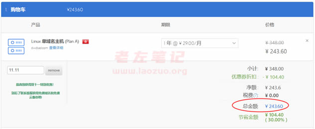 老左随便看下他们的主机产品折扣力度。比如选择香港虚拟主机最低配置单站点。