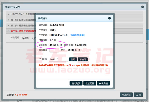 这里老左选择KVM架构,然后在标签里可以看到有香港葵湾机房。这里选择PLAN1机器。