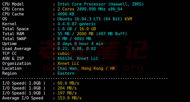 总结,对于LOCVPS主机商我们应该是比较熟悉的国内商家,商家也是比较严格的。我们不要用服务器做一些违规用途,被检测到还是会被禁止机器的。以上是对香港葵湾机器的测试,速度确实还是可以的。