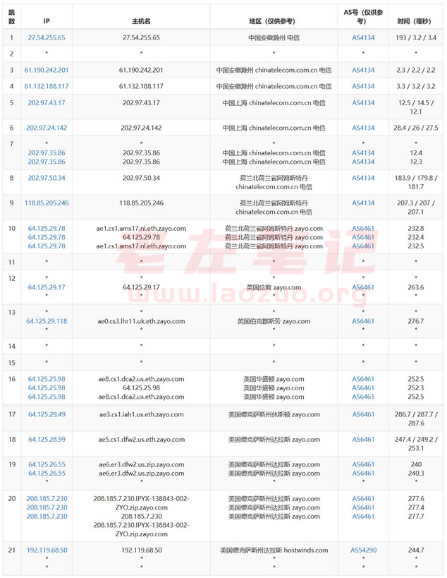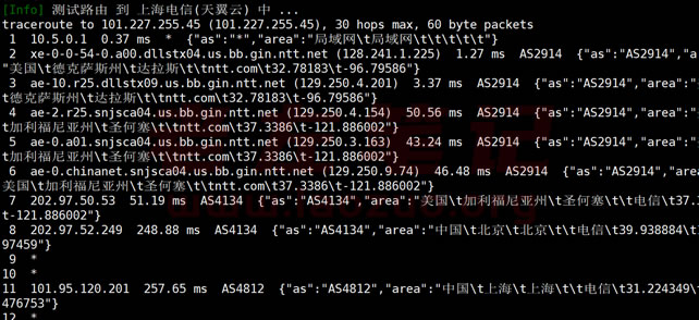 之前测试的是随机电信节点去程测试,这里回程测试。