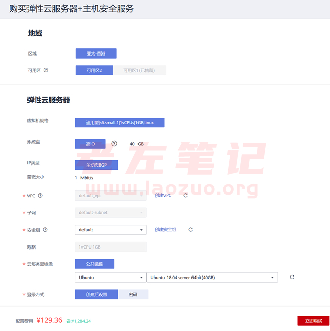 昨天老左也有在网站中分享到华为云828大促活动(活动),华为云目前产品线也是比较多的,比如国内云服务器是不需要备案且只需要有备案号即可解析使用。且今天老左有看到商家发布香港云服务器活动年付首次购买只需要129元,还是相对便宜的,至少比目前在进行中的腾讯云便宜。