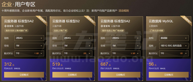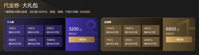 我们实际上可以看到企业用户的优惠力度是比较大的,当然也是对于企业用户的扶持。我们如果有企业用户且需要云产品的,看看活动力度以及选择。