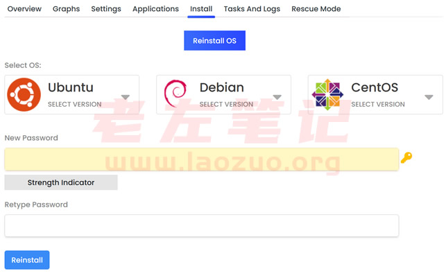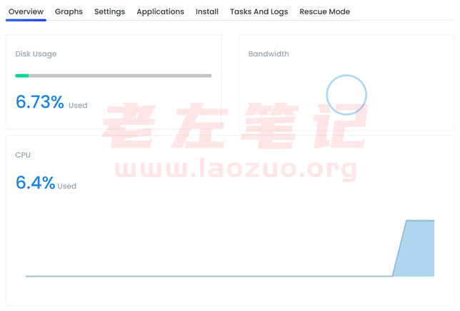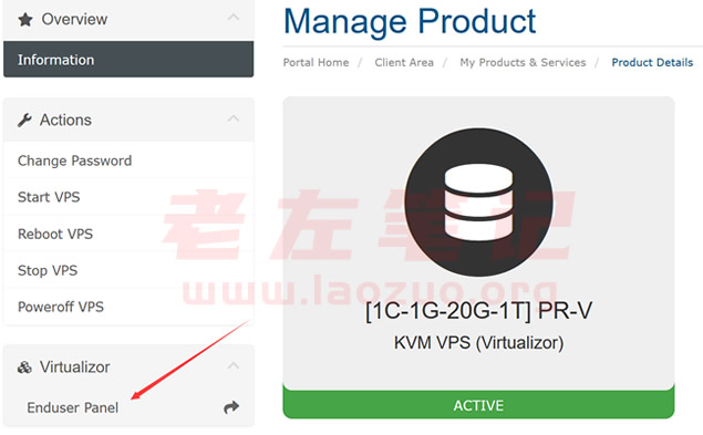 我们可以看到在购买之后,Virtualizor 面板和之前的SolusVM还是不同的,SolusVM需要我们单独的进入面板管理,有些时候面板账户很容易找不到。这里我们新面板直接在服务器后台看到。