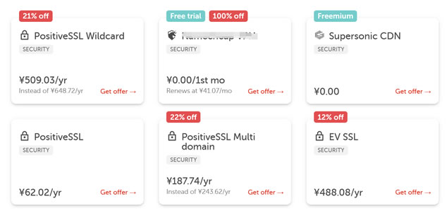 我们可以看到还有SSL证书,证书不便宜,平时好像就这个价格,以前我记得优惠的时候低至30元左右一年的PostiveSSL证书。