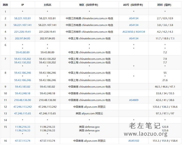 挑选电信节点测试路由去程测试。当然是CN2线路。