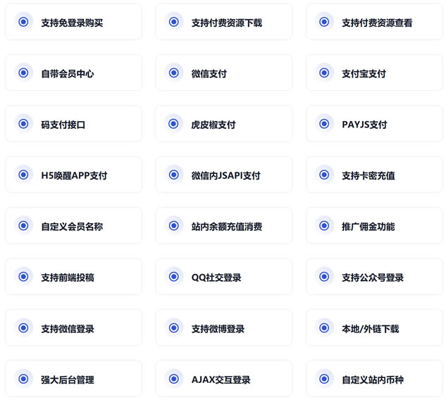 这款WordPress资源下载类主题功能还是比较强大的,可以介入码支付、虎皮椒支付、PAYJS等支付接口,实现资源的付费下载、视频付费浏览,同时支持卡密充值等功能。包括也有会员系统,让会员帮助营销资源产品且给会员计算佣金。