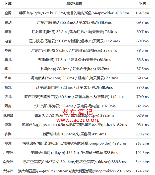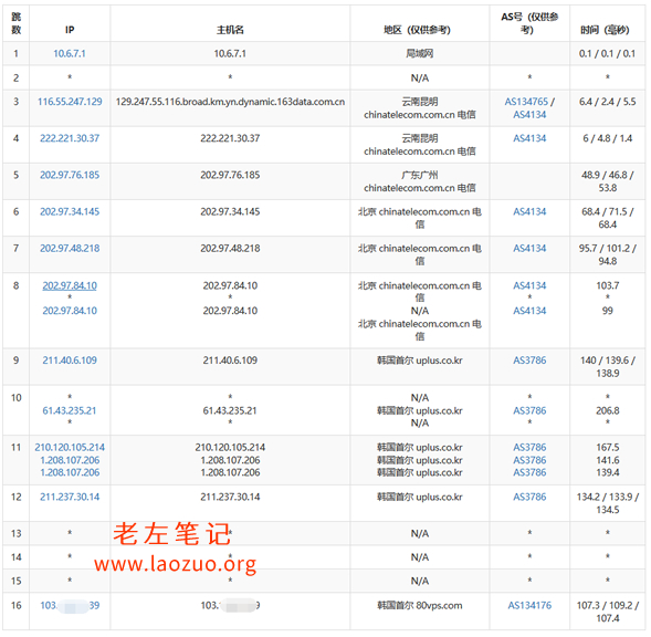 这里考虑到IP的隐私,所以没有提供测试IP地址,但是老左索要到一个IP地址,就简单的进行PING速度和路由追踪测试。