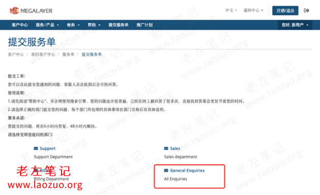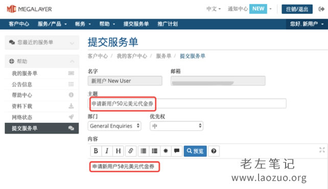 我们在新注册账户之后不要先购买服务器,注册完毕账户之后先工单申请。