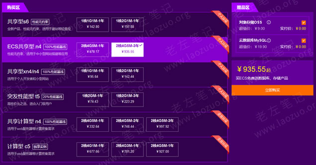 这里我们可以看到爆款产品有针对个人和企业用户,购买云服务器赠送云数据库和对象存储。比如我们赠送的对象存储可以使用WPOSS插件分离网站图片。