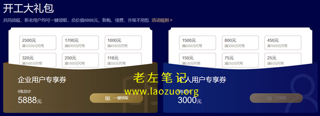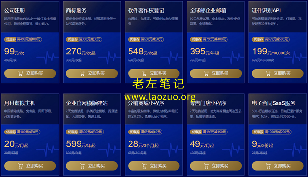 对于类似的公司注册、商标注册、企业邮局、小程序等配套企业产品也是有优惠的,但是这些都是第三方提供的。