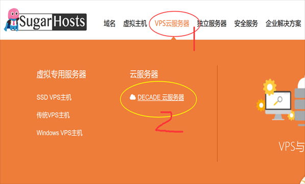 这里我们如果需要购买糖果主机DECADE云服务器的话,可以选择VPS云服务器菜单,然后在云服务器中看到【DECADE云服务器】,目前只有香港数据中心。