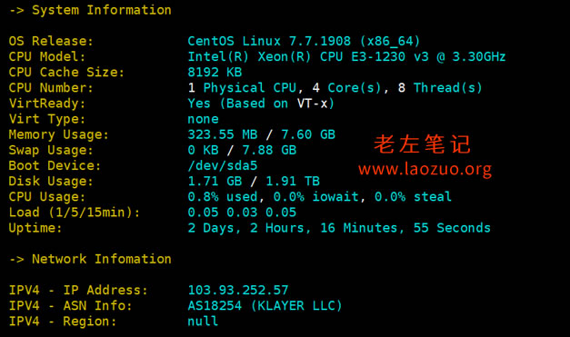因为老 左在前一段时间有测试过国内好几个主机商的中国香港云服务器,看配置上可能优势还明显,但是实际上搭建网站WEB系统之后,打开响应速度是很差的,都不如阿里云腾讯云1M带宽服务器。于是对于BGPTO新加坡服务器,我索要到一台测试机,打算测试下性能。