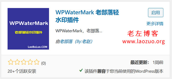老 左在《5款WordPress图片水印插件 简单阻挡文章/图片防盗》文章中有介绍到五款WordPress水印插件,在这篇文章中再分享一个WPWaterMark WordPress水印插件。相比之前的几款水印插件还有不错的优势的,比如提供九宫格固定位置的水印、随机水印,以及可以设置满铺水印效果,就是老 左有时候在博客中更新文章用到的满铺水印。