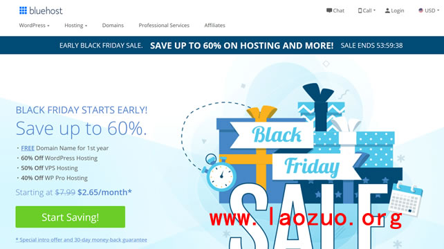 BlueHost主机商最近几年还是在有变动产品套餐和产品种类的。老 左(LAOZUO.ORG)个人建议这些传统的海外虚拟主机商并不是中文网站的最佳选择,但是在外贸建站或者英文网站项目的使用上,还是有较多用户选择的,毕竟虚拟主机也有虚拟主机的优势。在今年黑色星期五期间,老 左有看到BLUEHOST主机商也有发布黑五活动,主机低至四折。