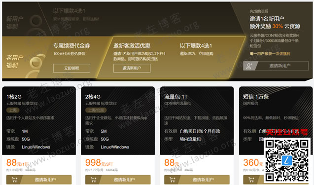 一晃即将又一年双十一到来,我们在感慨时间过的真快的时候,也看到各大电商平台憋足各种点子忽悠我们的钱包,又到一年购物季。对于我们大部分站长同学来说,肯定很多网友和LAOZUO.ORG一样会较多的关注云服务器、云数据库、CDN流量包等等常用的云计算产品,毕竟在一年中虽然商家的活动也很多,但是双十一应该算是一年中活动最优惠,而且去年有些网友购买的产品可能也需要更换。